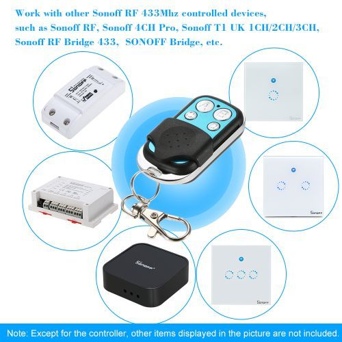 *Work with other Sonoff RF 433Mhz controlled devices, such as Sonoff RF, Sonoff 4CH Pro, Sonoff T1 UK 1CH/2CH/3CH, Sonoff RF Bridge 433, etc.
