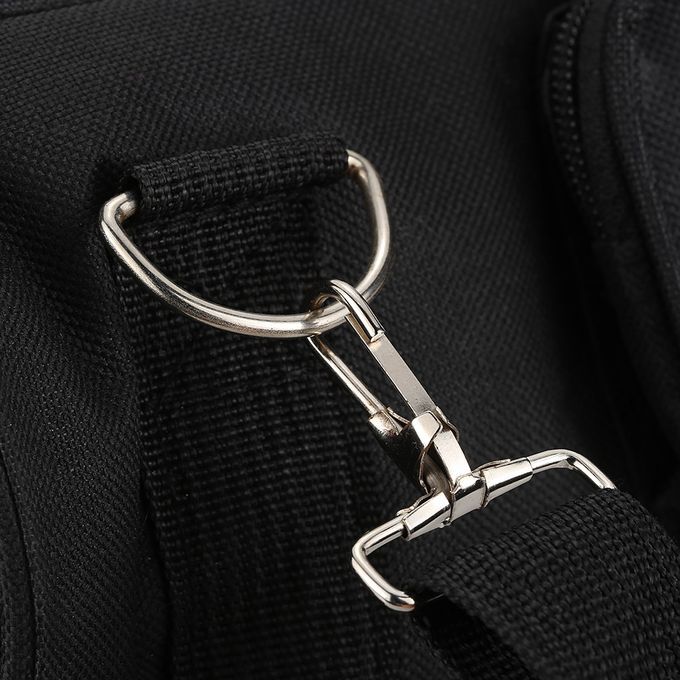 Adjustable shoulder strap and gripped handle on the side.