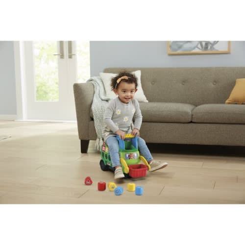 Take a ride on the Sort & Recycle Ride-On Truck and learn about recycling and the environment! Pick up blocks and sort them by shape and color, then store them inside the truck.