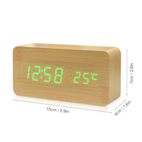Buy Sound Control Wooden Square Led Alarm Clock Digital - Brown in Nigeria