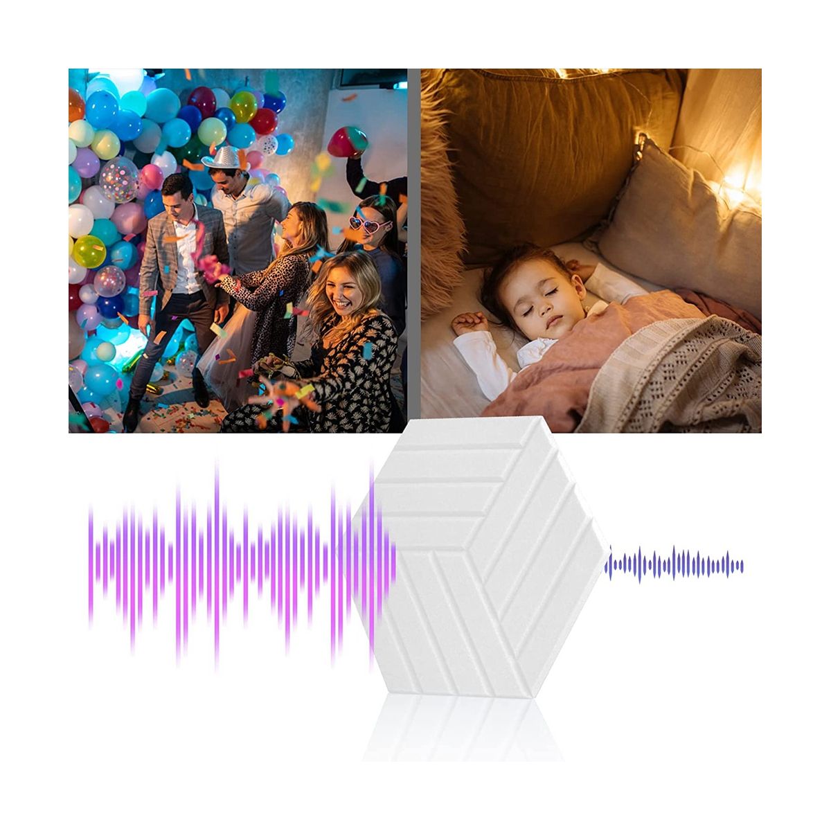 This hexagonal sound insulation board adopts beveled edge design, you can hang this hexagonal soundproof wall panels in a of ways and double as a decorative in your favorite space. Offering decor without sacrificing any of their soundproofing power.