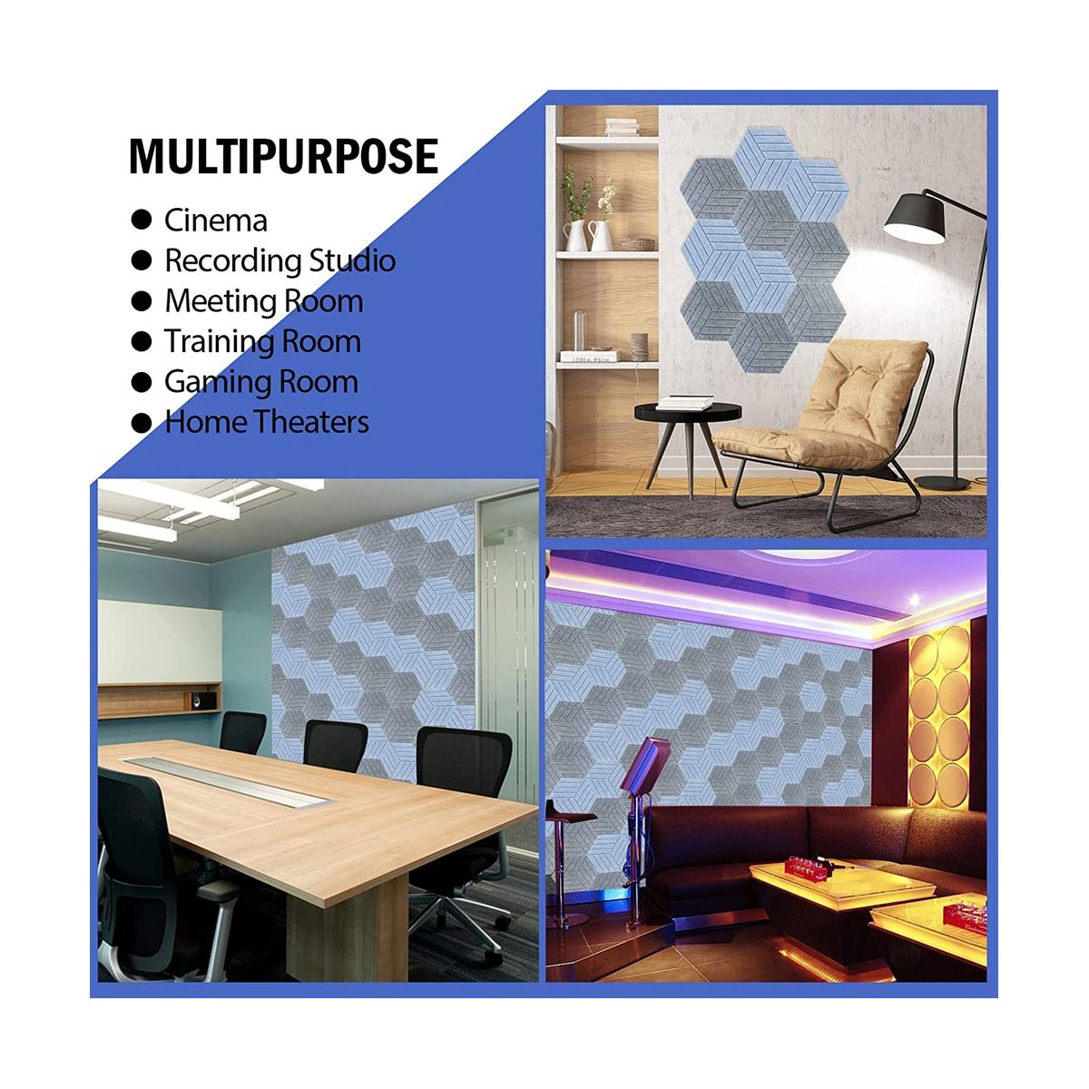This hexagonal sound insulation board adopts beveled edge design you can hang this hexagonal soundproof wall panels in a of ways and double as a decorative in your favorite space Offering dcor without sacrificing any of their soundproofing power
