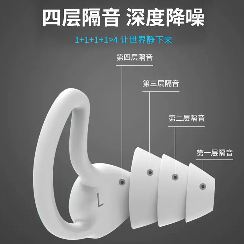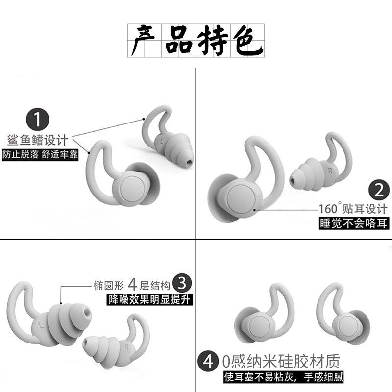 Soundproof learning noise-cancelling earplugs soft silicone anti-noise sleep special dormitory nap anti-noise mute artifact cross-border Playful gray 4 layers (2)