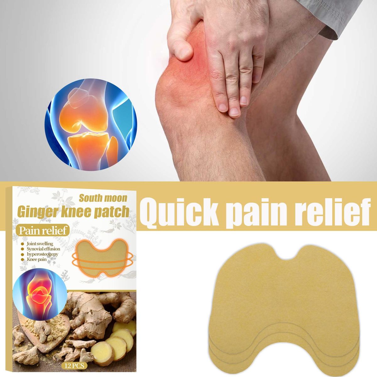 Buy SOUTH MOON 12Pcs/Box Ginger Knee Patches Pain Relief Joint Swelling Synovial Effusion Hyperosteogeny Knee Pain in Nigeria