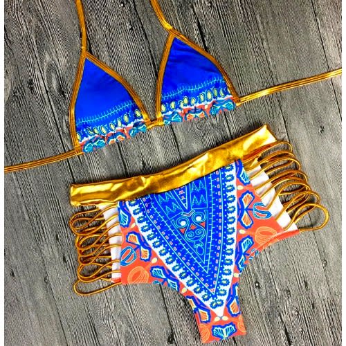 Buy Southafrican Golden Halter Bikini High Waist Swimwear - African Print Beachwear - 2pieces in Nigeria