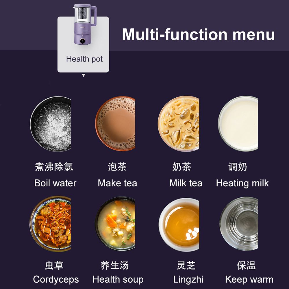 1X 600ml Soybean Milk Machine Portable Juicer Blender Multifunction Cytoderm Breaking Machine Health Pot Double Cup Switchable 220V