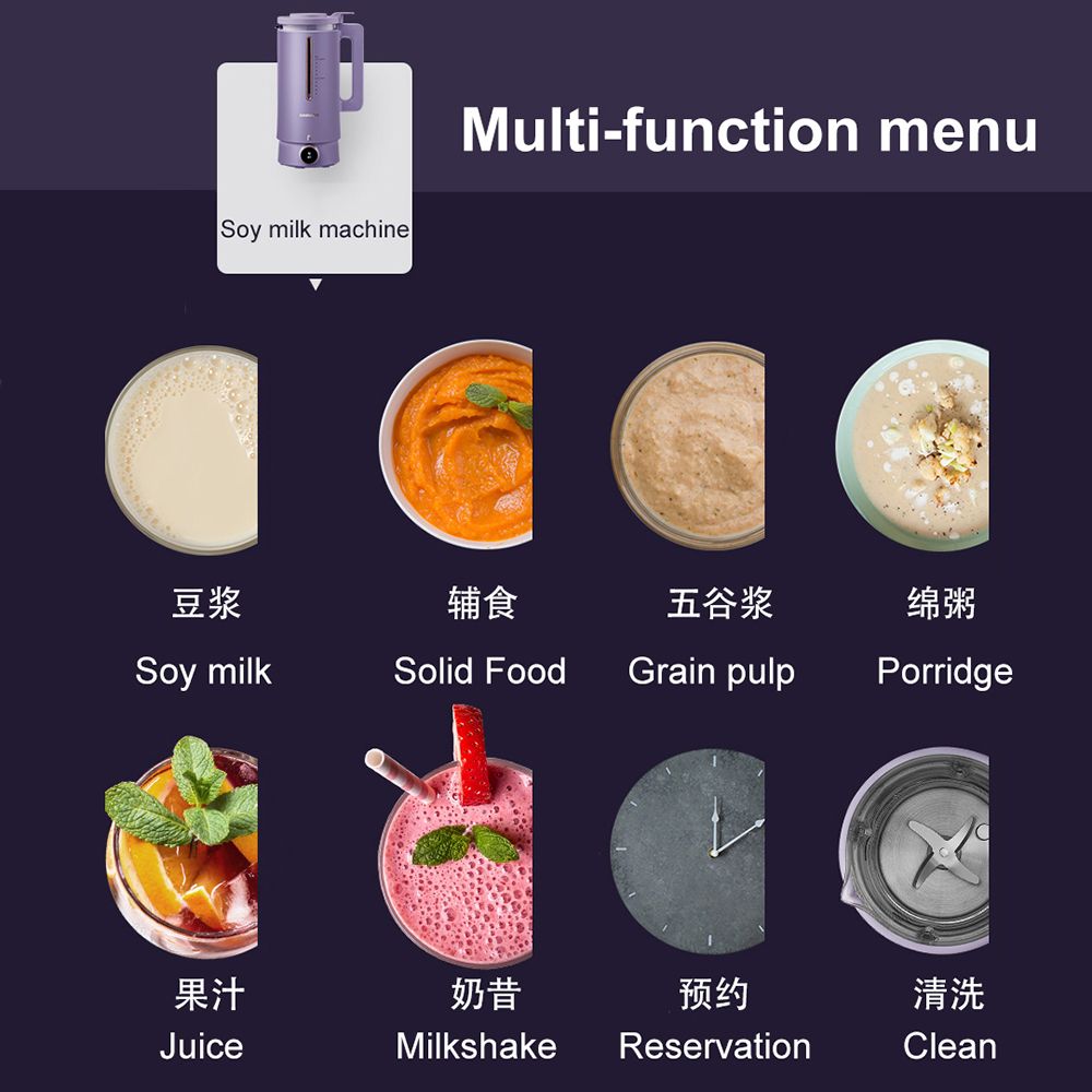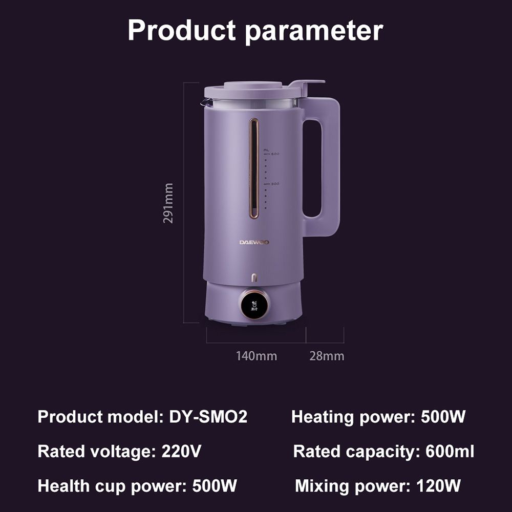 600ml Soybean Milk Machine Multifunction Cytoderm Breaking Machine Health Pot Electric Juicer Blender Double Cup Switchable 220V