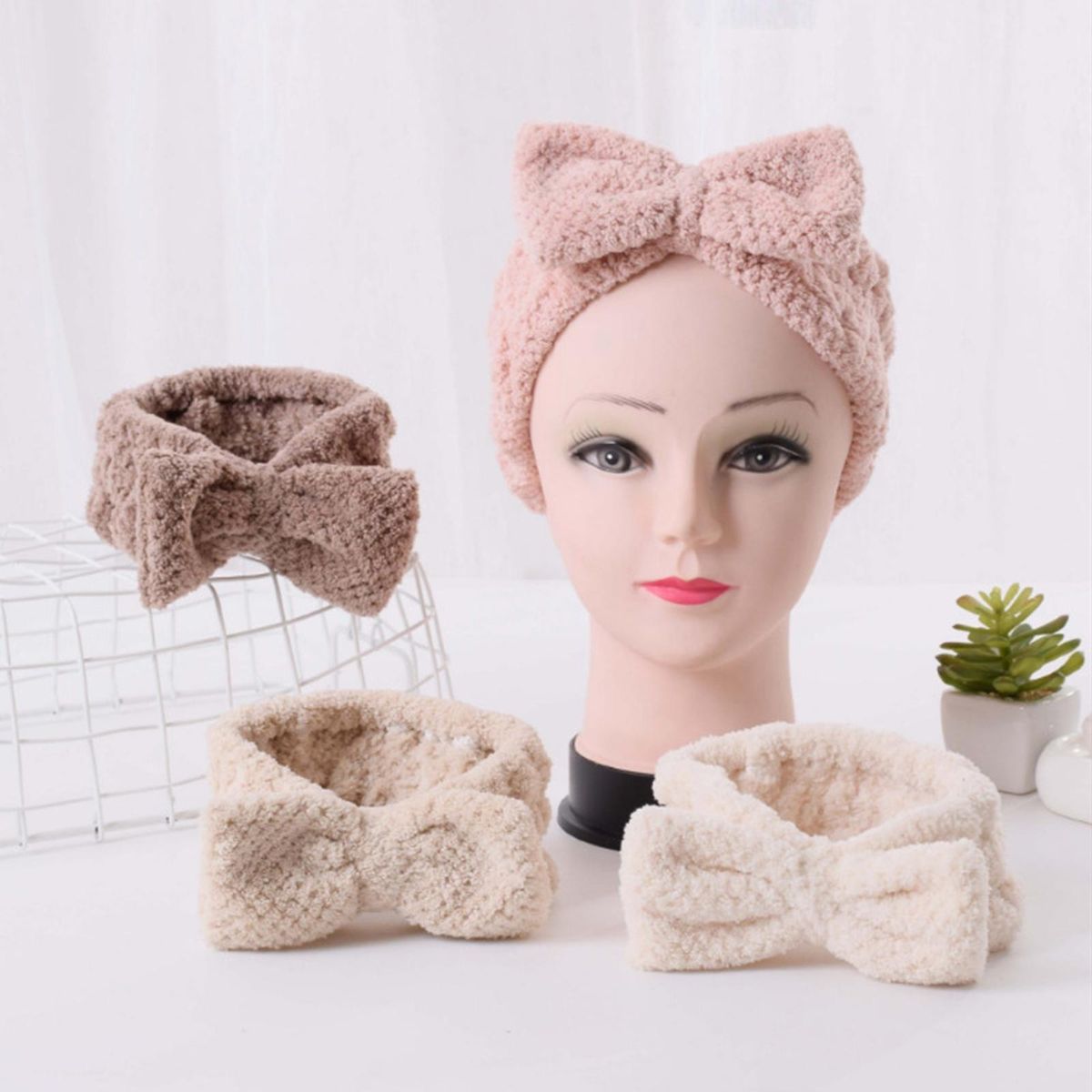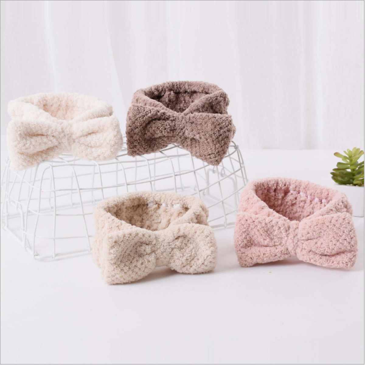 Stretchy Headbands: for keeping hair out of face when applying or washing face. Sweet hair accessory to use in the bathroom or .Comfortable& Soft: Exceptionally , soft, comfortable and easy to wear. Very cute hair bands for washing face shower spa or daily skin routine.Material: made of coral fleece wraps, soft and washable and fast-drying.Cute Design: the top of headband with a cute bowtie shape, makes you sweet and cute.Application: suitable for you when you are doing spa, sports, yoga, face-washing and taking shower.