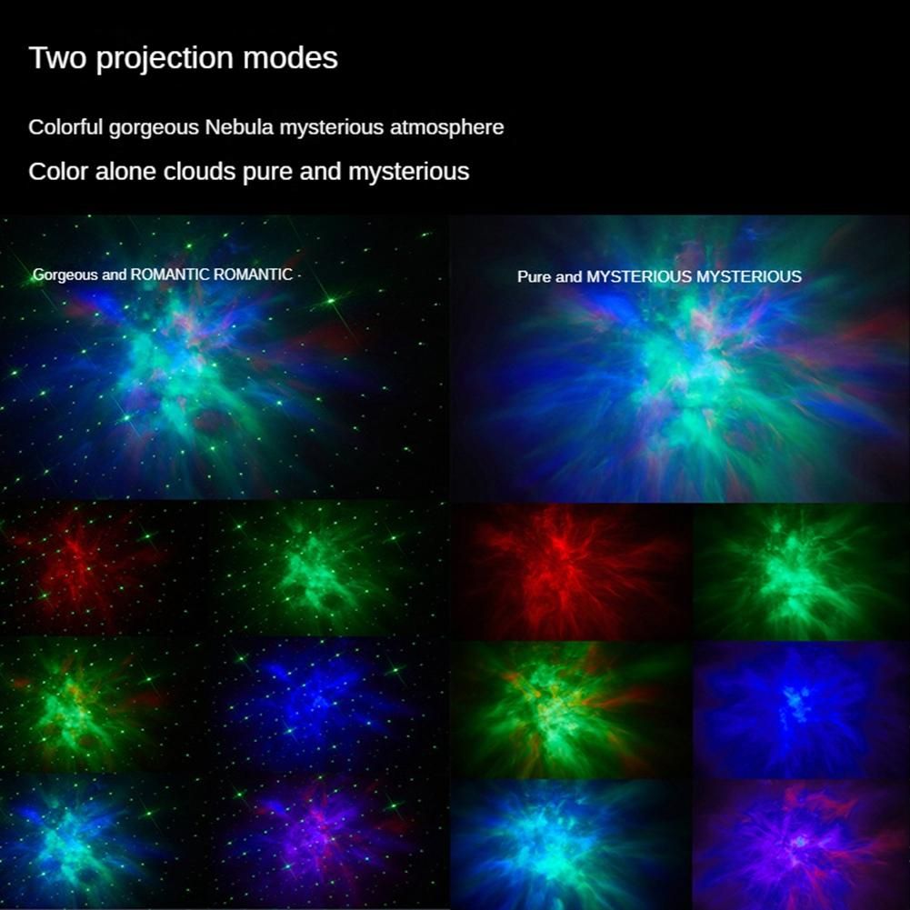 The colorful and unpredictable nebula comes in a variety of color combinations and is decorated with flashing star lights, which can be switched by remote control or buttons. The high-definition starlight galaxy is projected onto the wall and ceiling, making you feel like you are in the vast galaxy, creating a romantic atmosphere and enjoying your leisure time.
