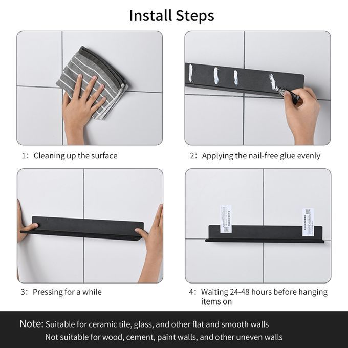 Simple Installation: cleanup the mounting surface, and apply the nail free glue on the surface, then mount it on the wall, last wait for 24-48 hours before hanging anything.
