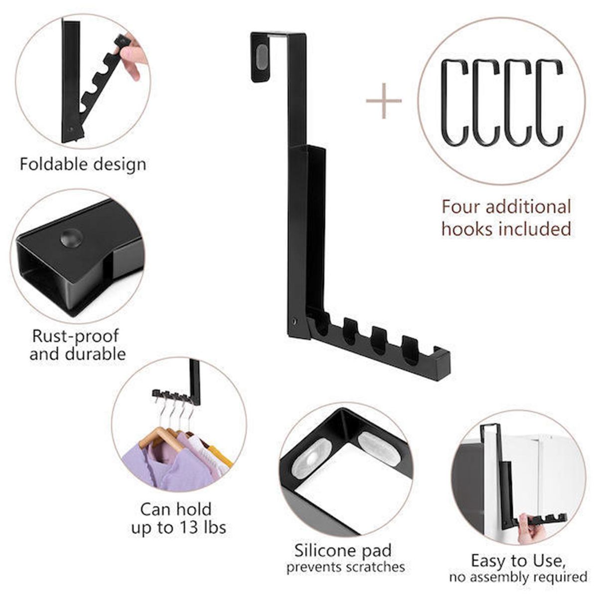 Featuring 4 hooks, our foldable door hook is perfect for convenient drying in the washroom. simply open it up and hang your towels or clothes to dry. when not in use, just fold it away for a neat and tidy appearance. .