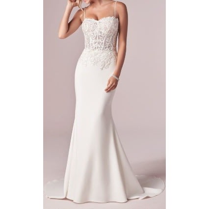This bridal dress is made from one of the finest range of bridal duchess . The train is detachable. It is deld tzble and elegant white which would make you stand out on your special day. This dress is astonishingly beautiful.