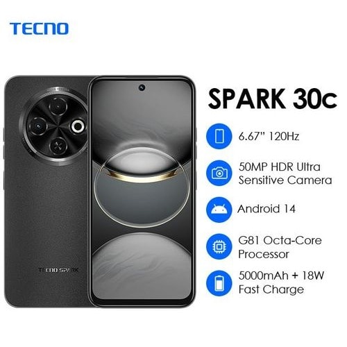 Buy Spark 30c - 6GB RAM - 128GB ROM - 4g - Dual Sim - Fingerprint - 5000mAh - Black in Nigeria