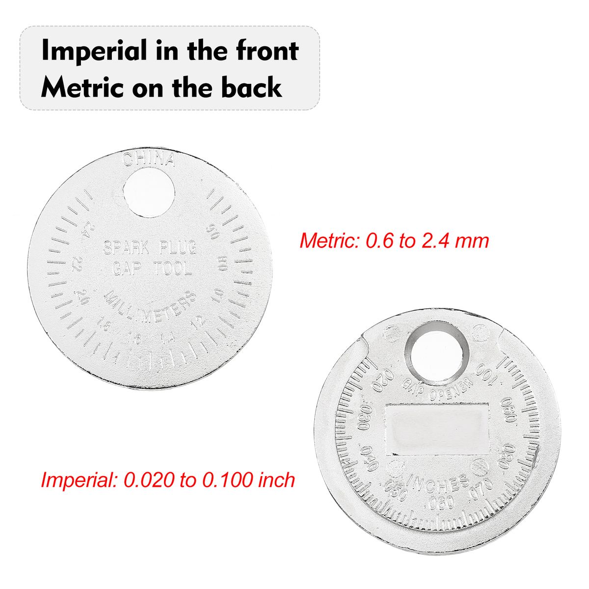 Easy to read: Spark plug gap gauge scaled from 0.020 quot; to 0.100 quot;(0.6-2.4mm).