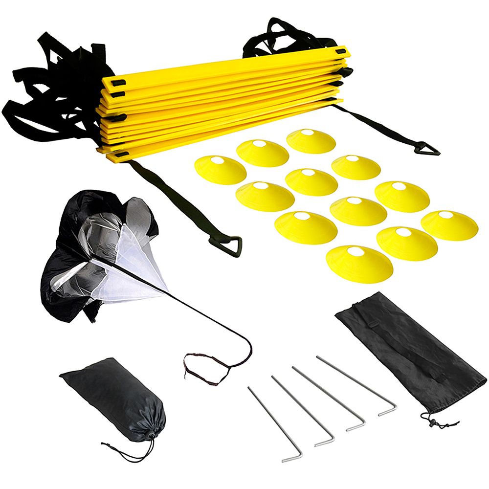 1 x Ladder 1 x Resistance Parachute 12 x Cones 4 x Steel Stakes 2 x Drawstring Bags