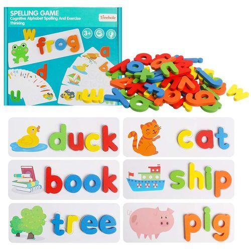 Great educational toys for toddlers to start building words by sorting the wooden letters and match them onto the flashcards to form a word.