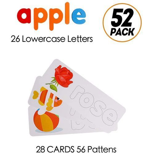 This letter matching game toy includes 52 wooden lowercase letters, 28pcs double sided activity flashcards with bright color and vivid pictures.