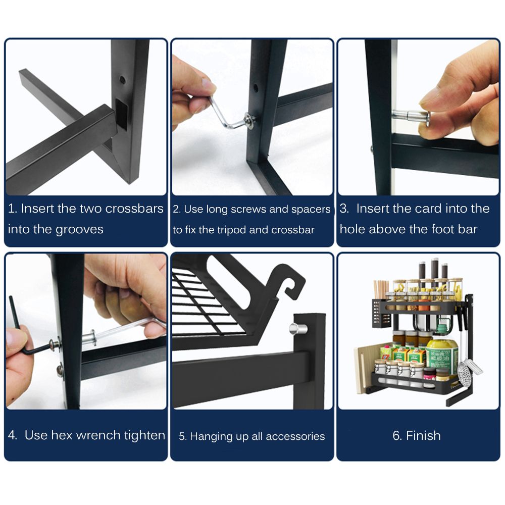 Versatile Rack --- Professional storage rack utilized in kitchen to store, sort, organize and easily access to s. With 3 Hook for hanging accessories;