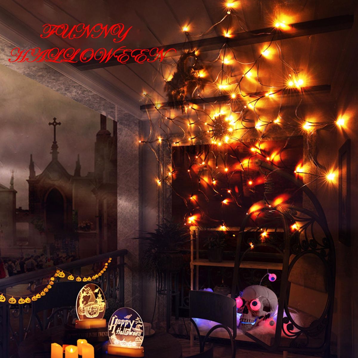 Buy Spider Web Lamp Remote Control 8 Brightness Modes Energy-saving Eye-protection Wall Corner Halloween Decoration in Nigeria