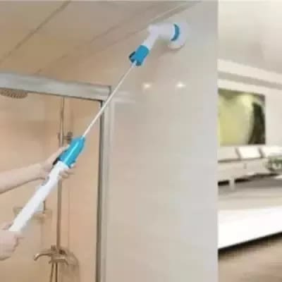 Hurricane Spin Scrubber is cordless, powered by a rechargeable battery AND has an extending pole that adds over 4 FEET to its reach! This means you can clean low down areas like the floor of your shower or bath, skirting boards and floor tiles, OR high up areas like shower heads, tile tops and ceilings with NO BENDING!!