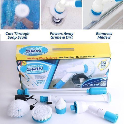 Tired of scrubbing on your hands and knees? Amazing Hurricane Spin Scrubber does the hard work for you. Powerful, flexible bristles cut through tough grime, scum and dirt in a breeze ndash; 300 scrubs per minute! Your cleaning time is cut in half. Helpful to those with arthritis or dexterity concerns. Finally, you can effortlessly remove mildew in a flash and without harsh chemicals.