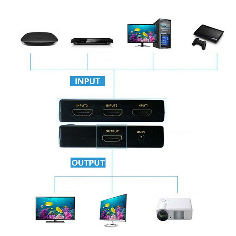 3.Connect up to 5 HDMI-compatible devices to just 1 HDMI-compatible port on your HDTV/monitor