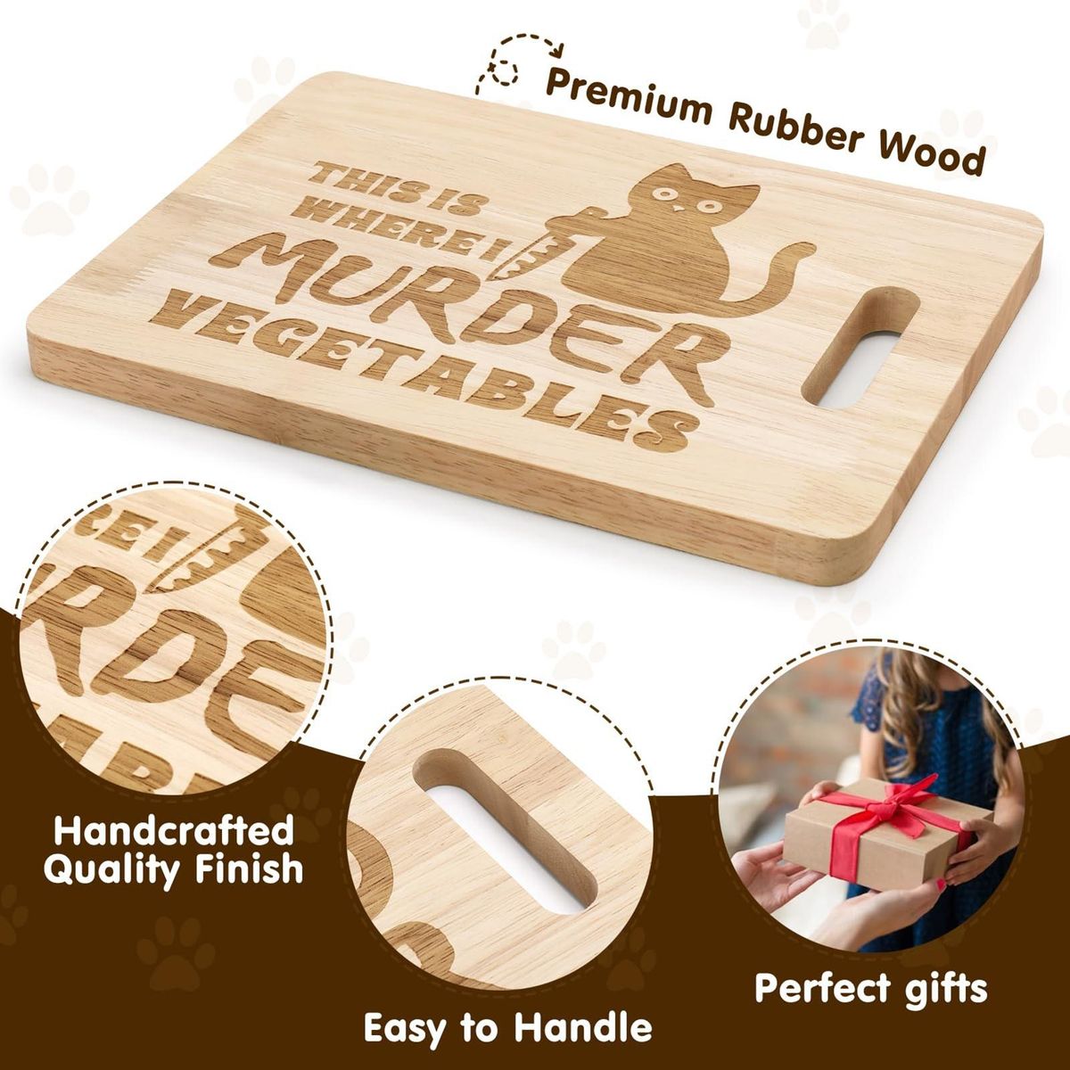 Designed with cutout handles, this cutting board is convenient to use and easy to store. its durable material guarantees long-lasting usage. this premium cutting board makes an excellent gift for friends, family members, teachers, or any cooking enthusiast on special occasions like halloween, christmas day, mother's day, housewarming parties, or birthdays.