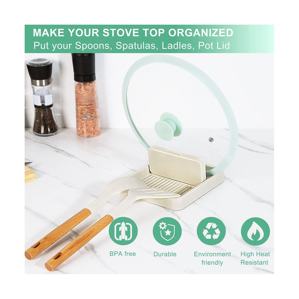 [Food Safe Material] The spoon holder is made from high quality -Free plastic,which can resist high heat from your stove or washing machine. make attention and 't put it on the top of the fire to avoid melting.