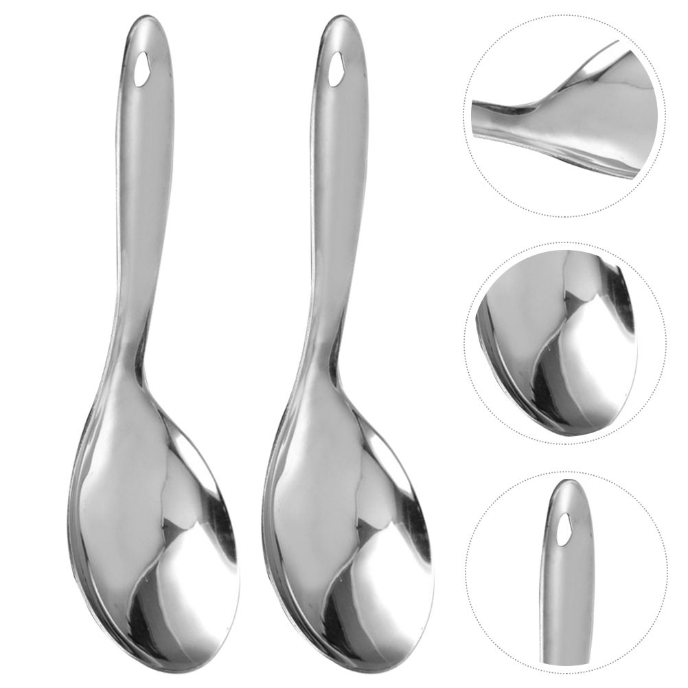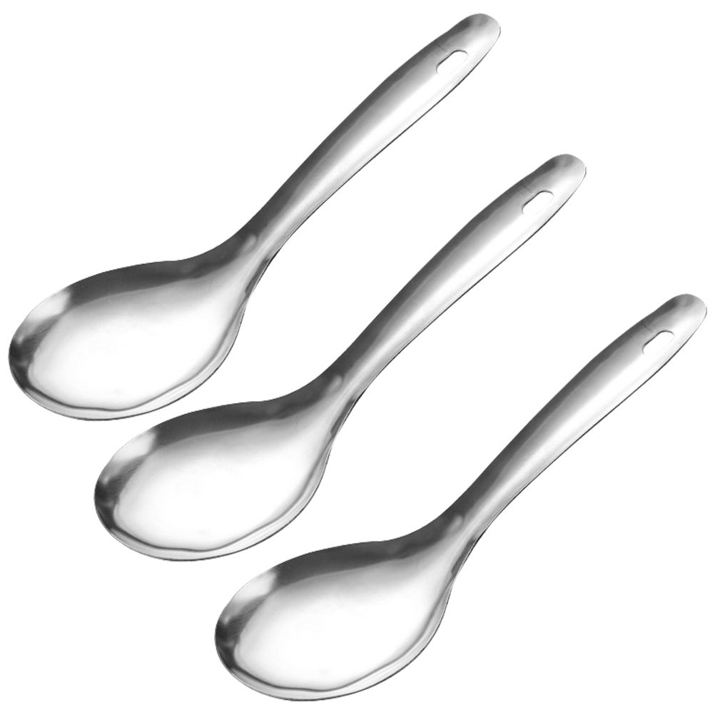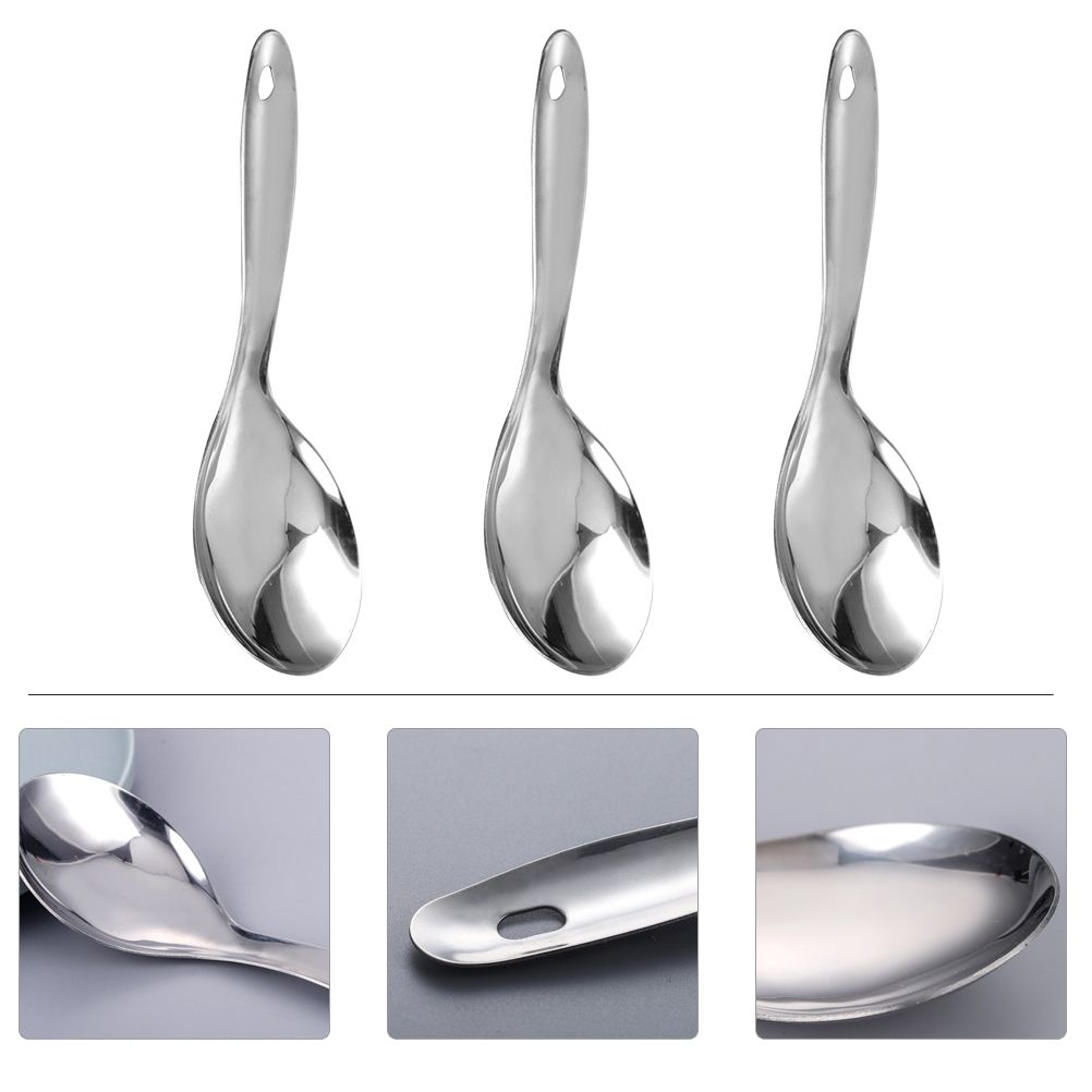 Description 3Pcs Stainle Steel Rice Spoon Non Rice Scooper Rice Cooking Spatula Soup Serving Spoon Smooth Ramen Spoon for Home Restaurant Supplies Features - Color: Silver、 - Material: Stainle steel、 - Size: About 23. 50X7. 50X0. 20cm、9. 24X2. 95X0. 08inch、 Package Including、 3 x Rice Spoons、