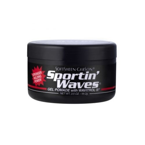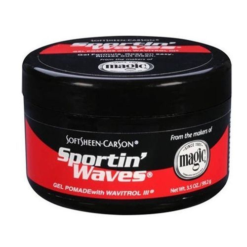 Gel Pomade goes on easy and rinses out clean. The Sportin' Waves range is made by Magic - formulated for Black Men. Works great on shorter hair styles and wavy hair. The light formula contains Wavitrol III which is a perfect addition that doesn't weigh down the hair. It has a stiffer consistency with a clean scent.Promotes waves and restores moisture. Goes on easy and rinses out clean. Regular hold strength. • Maximum wavemaking formula • Rinses out clean