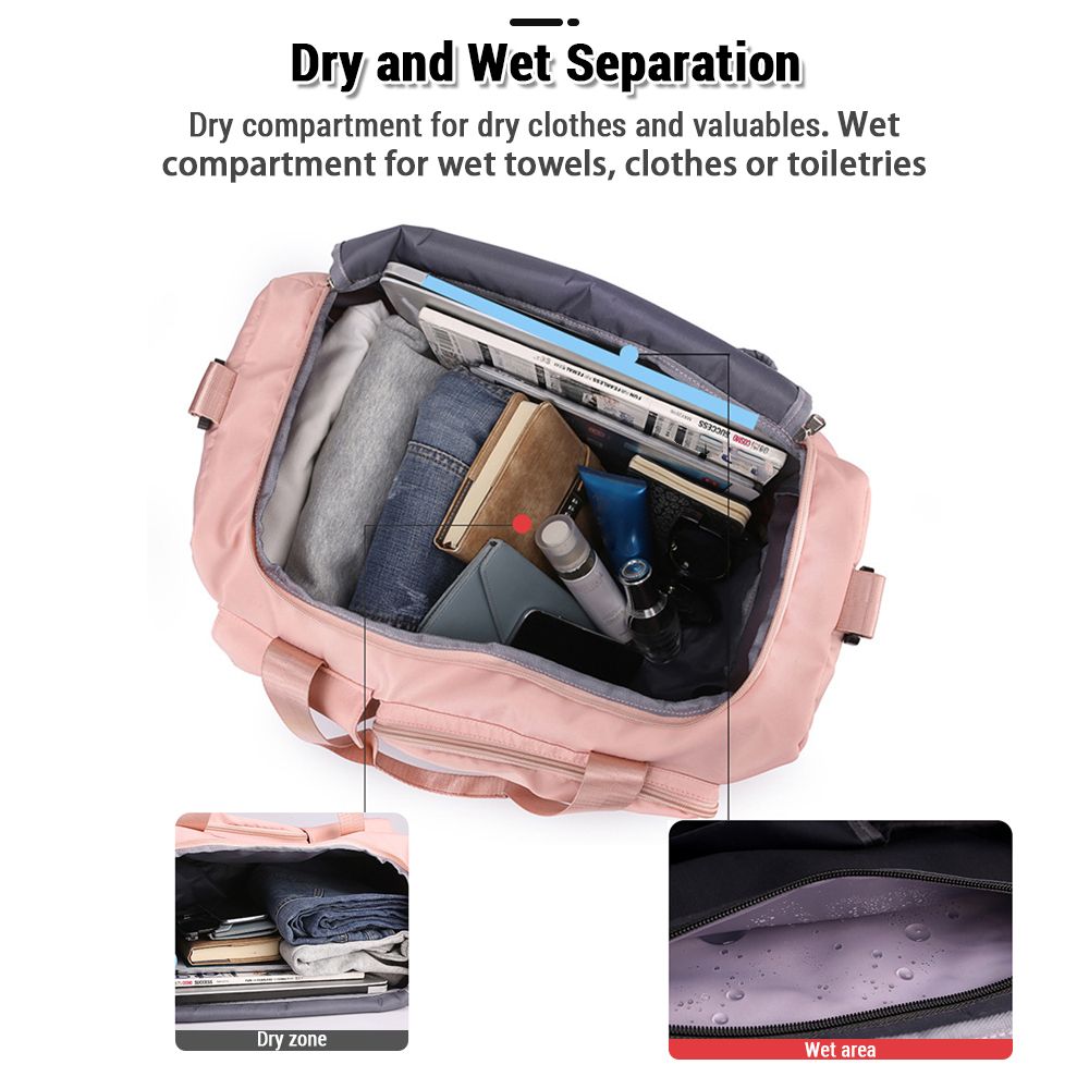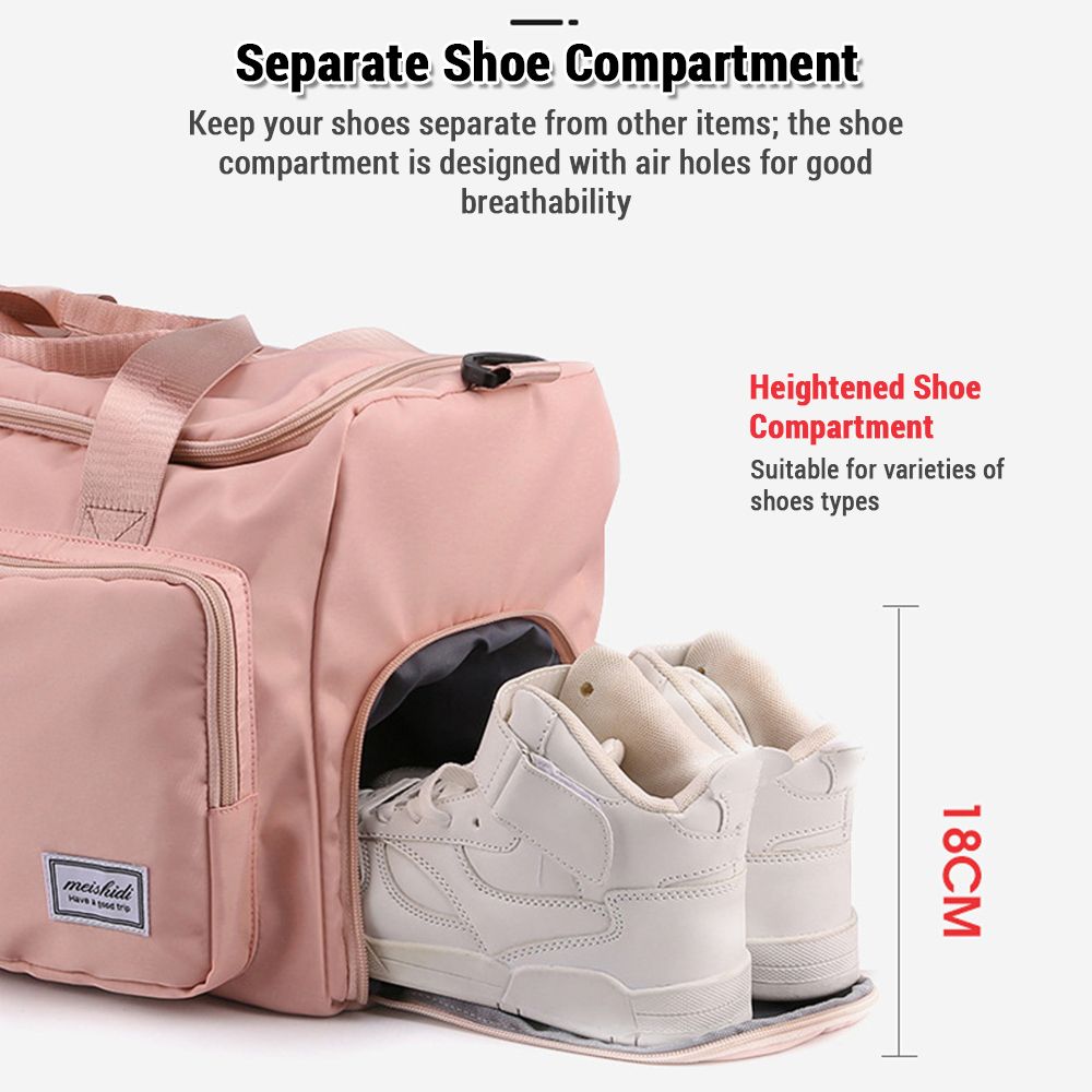 Shoe compartment with air vent keeps your shoes separate from your other belongings, keeping your shoes clean and dry.