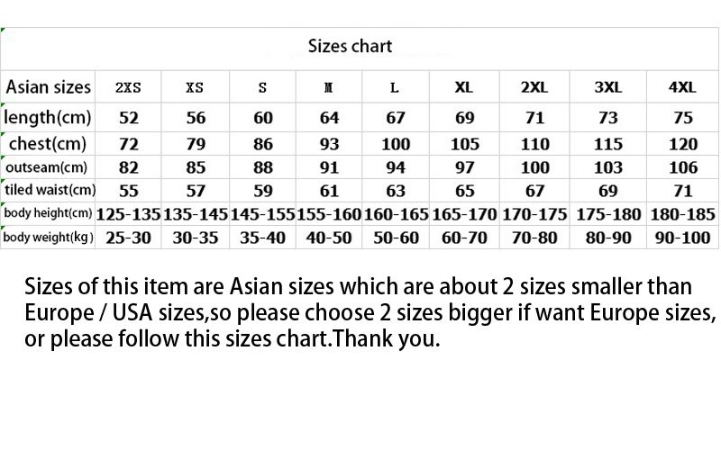 Sizes type: Asian sizes which are about 2 sizes smaller than Europe / USA sizes