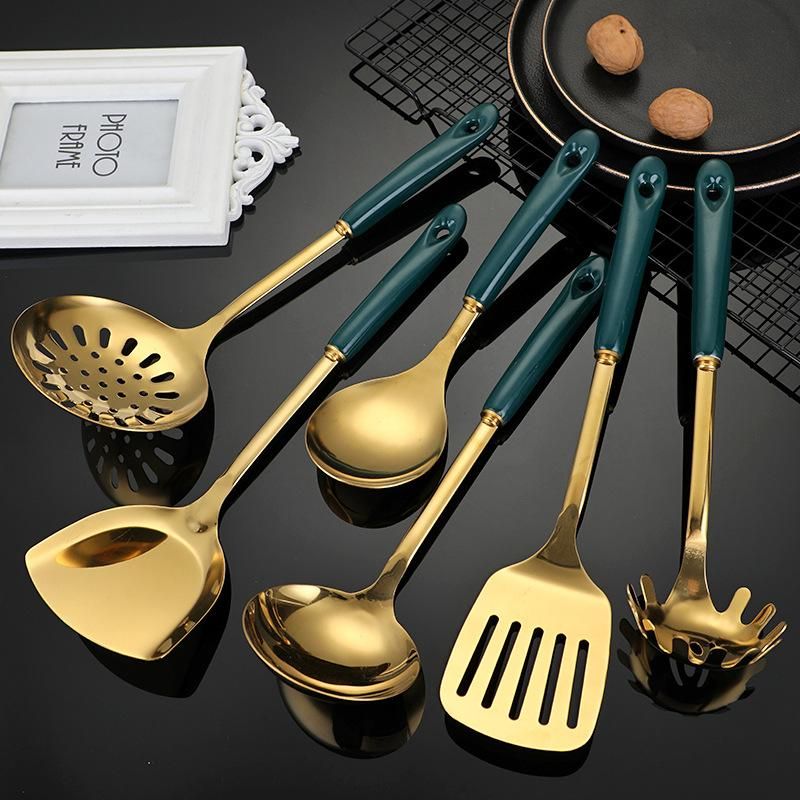 Buy Spot light luxury kitchenware 7-piece set ceramic handle stainless steel kitchenware set spatula colander spoon kitchen supplies Simple white (gift box) in Nigeria
