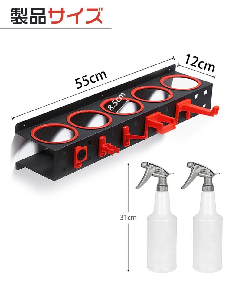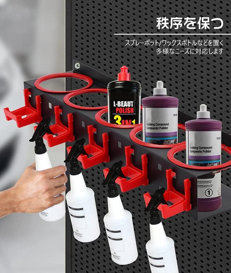Our spray bottle holder is your good choice. It can store your seat upholstery cleaner bottles, waxing bottles, and much more. Make your garage or car wash shop more organized and work more efficiently.