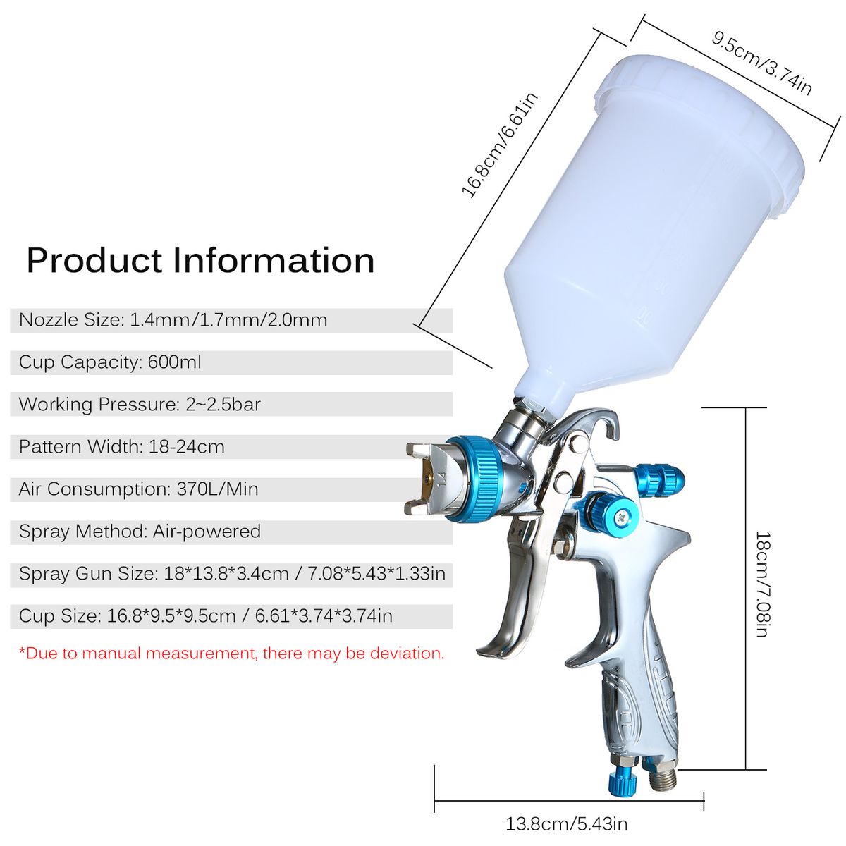 Spray Gun Size: 18*13.8*3.4cm / 7.08*5.43*1.33in
