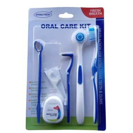 ORAMUNT Oral Care Kit Set of 6 Items for Extra Clean Teeth and GumsA complete Oral care kitTooth brush Dental Tooth Pick Interdental Brush Dental Stain Eraser Tongue Cleaner Dental Floss Dental Mirror6 different oral tools