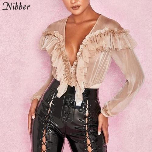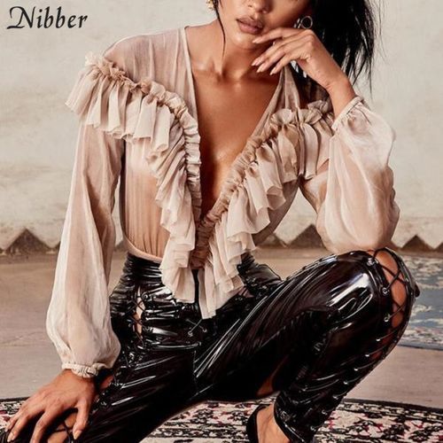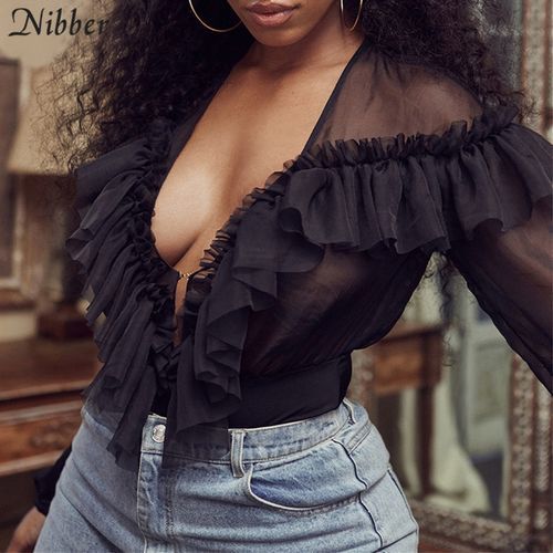 1X spring wild Elegant black full sleeve bodysuits2019hot French romantic ruffles office ladies Casual sexy bodysuit