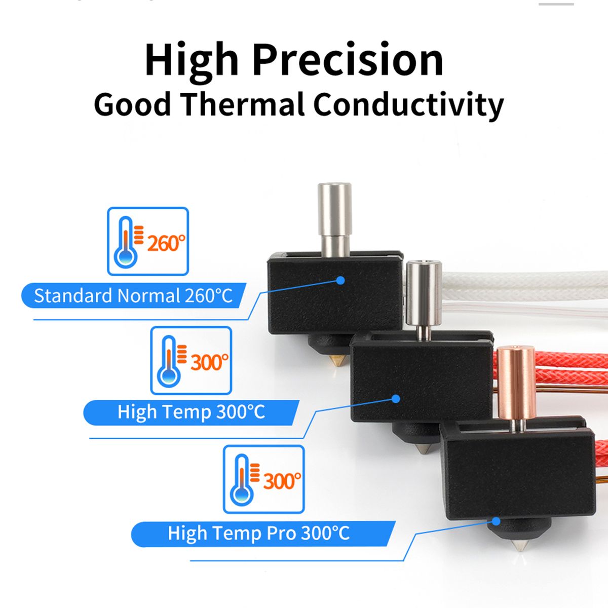 Heatbreak is made of Aluminum Alloy, the temperature can heat up to 260℃.