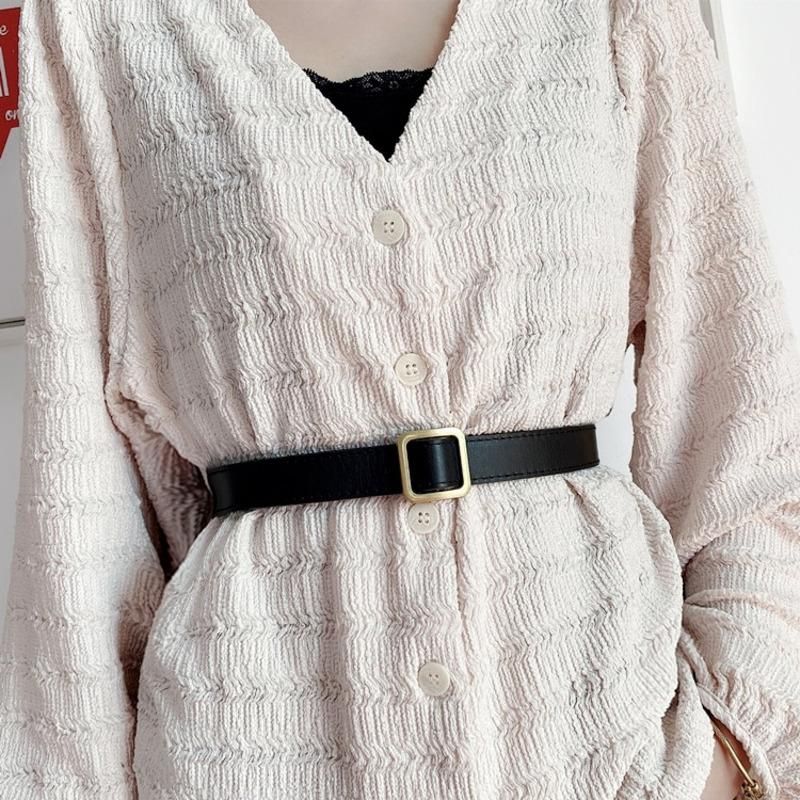 Square Buckle Women Belt Simple Vintage Students Waistband Adjust Fashion Casual No-hole Cummerbunds