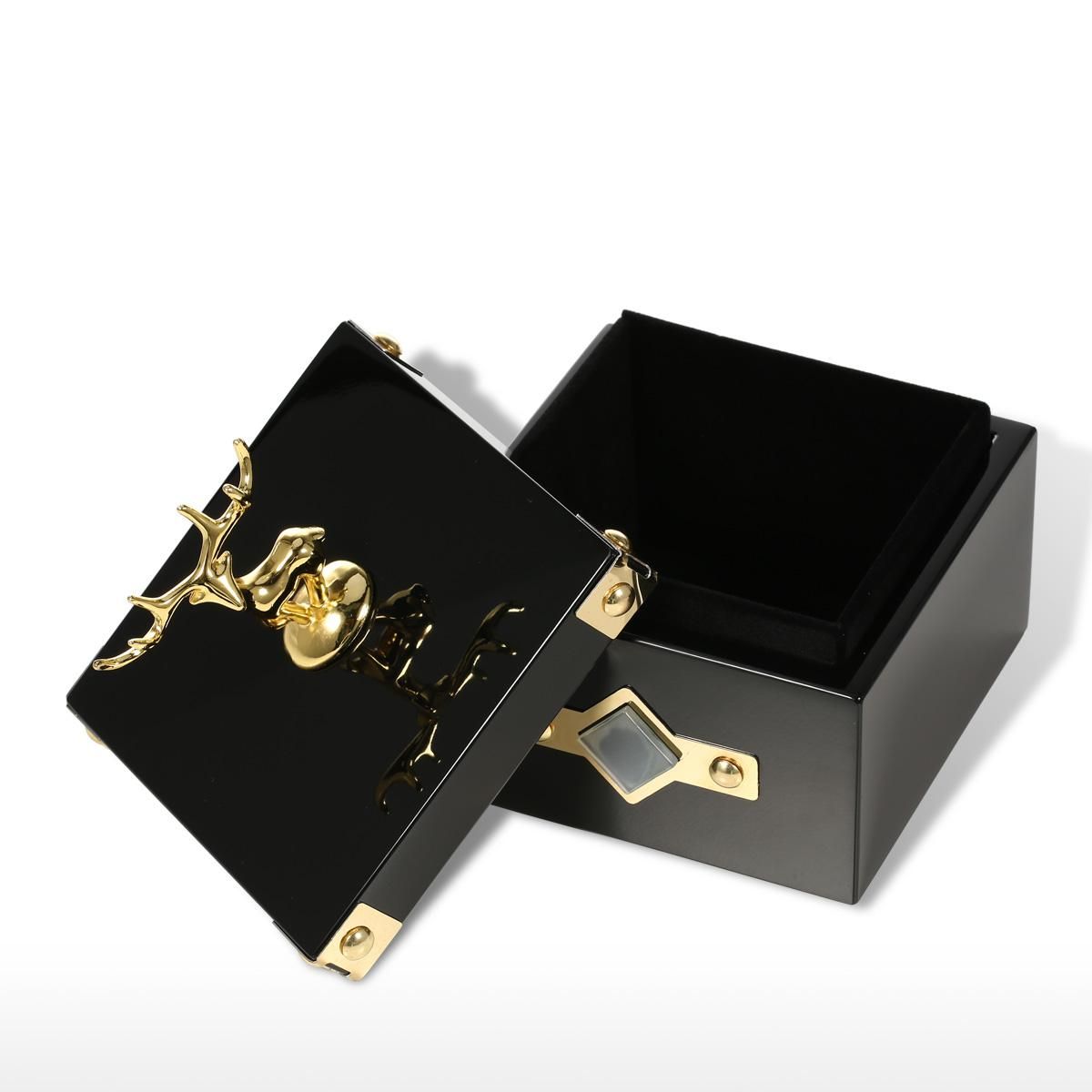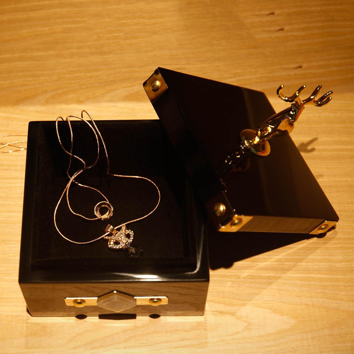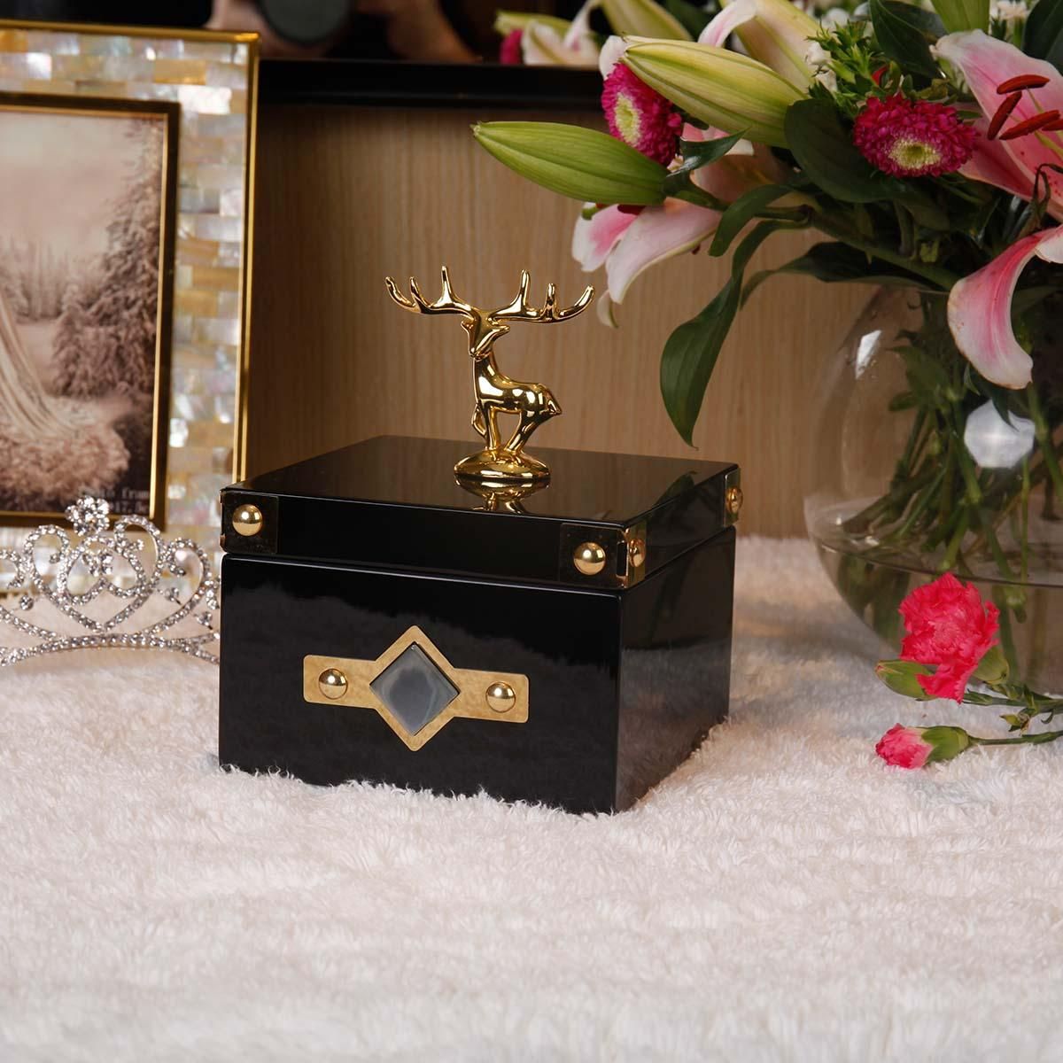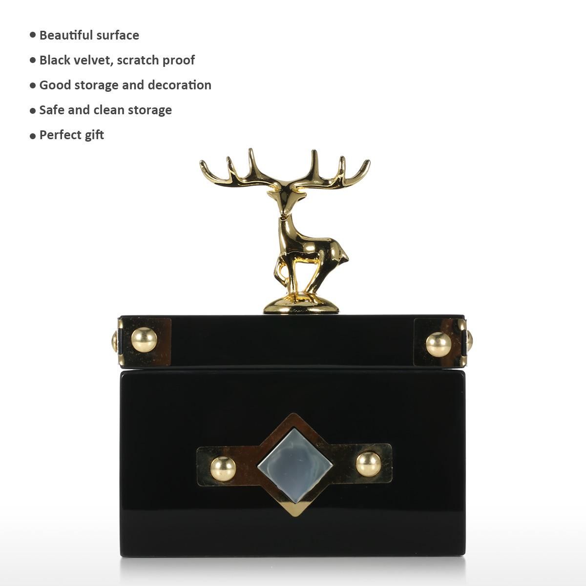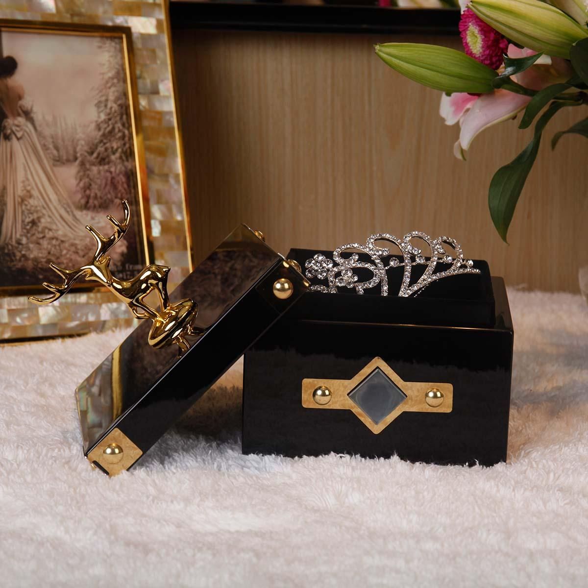 Buy Square Jewelry Box (Golden - Deer Small Size) Storage Case Wooden Ring Necklace Storage Box Birthday Gifts for Women Black Velvet in Nigeria