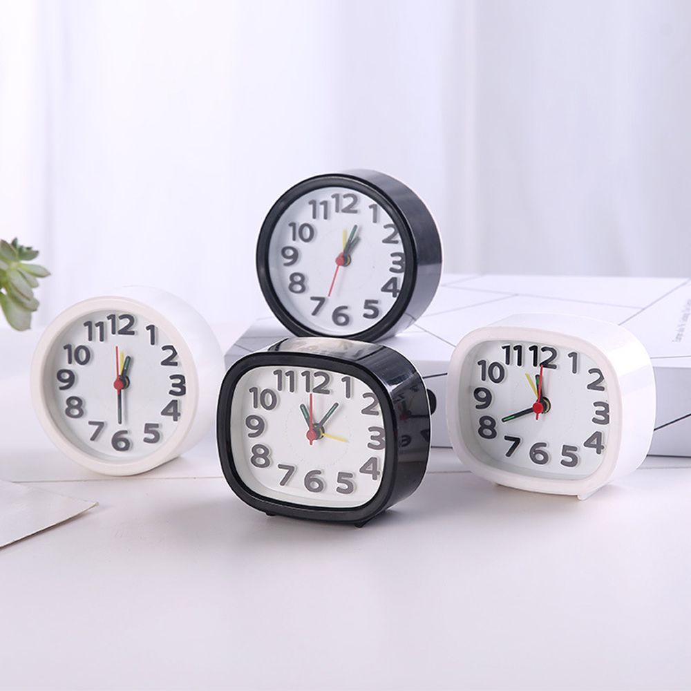 1X Square Round Wake Up Table Clock Battery Alarm Clock