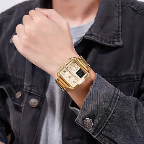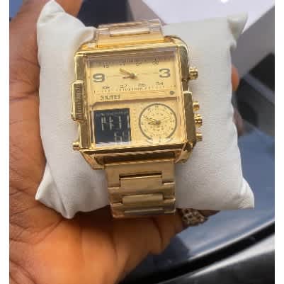 Buy Square Shape Water Proof Men's Wrist Watch- Gold in Nigeria