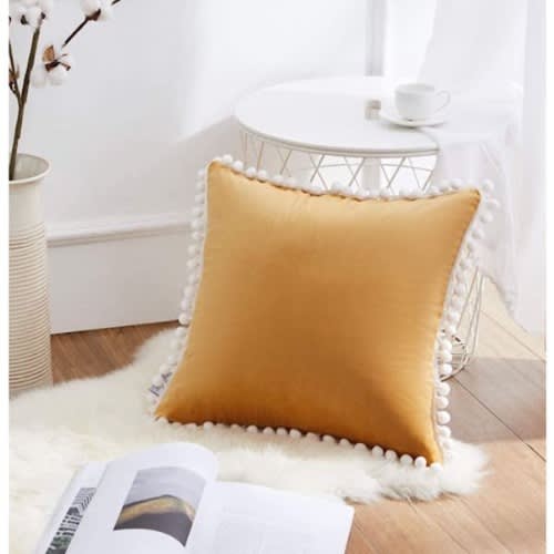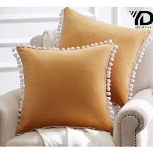 Buy Square Shaped Throw Pillows With Pom Poms - 2 Pieces - Gold in Nigeria