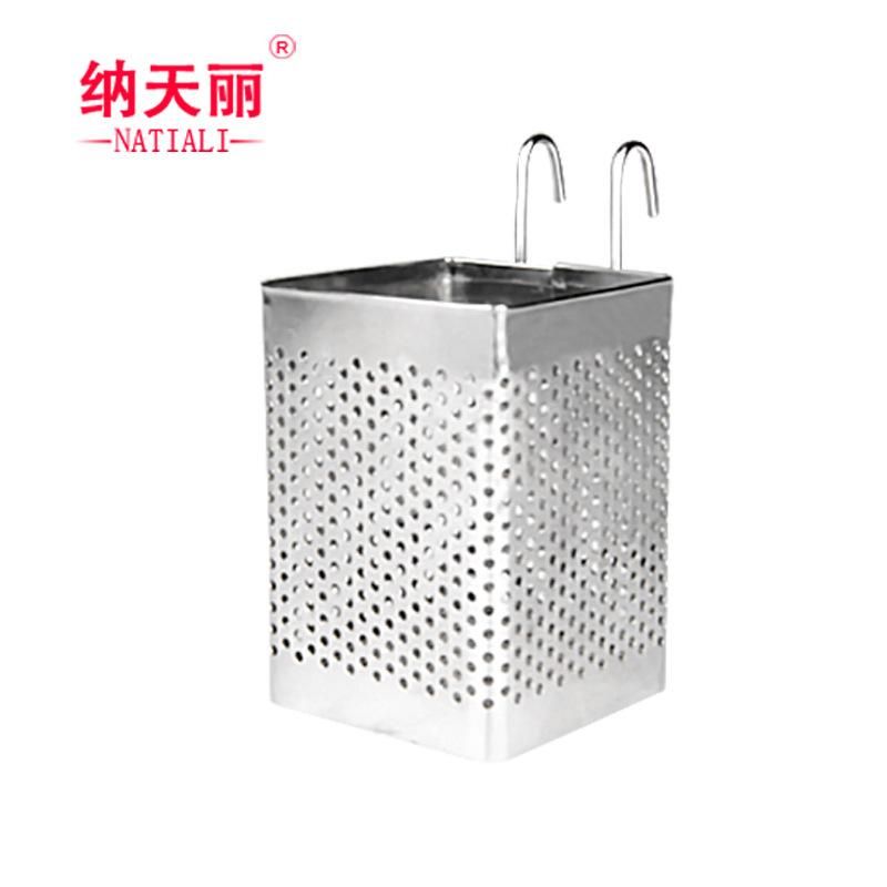 Buy Square stainless steel chopsticks barrel hanging drain chopsticks barrel chopsticks cage rack creative kitchen storage box tableware drain rack double grid in Nigeria