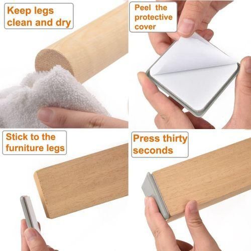 Effortless Glide Action ----- Simply slide these pads under the furniture feet, and glide heavy furnishings and appliances around your house without damaging floors or getting stuck on rugs. Protect your flooring and save your spine!
