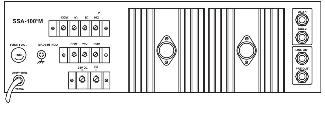 Speaker Outputs: 4Ω, 8Ω, 16Ω, 70V & 100V