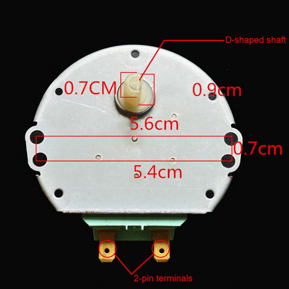 The SSM-16HR 6549W1S011B turntable motor is a synchronous motor, 2-pin terminals, d-shaped shaft, nice replacement parts replacement for LG microwave oven.