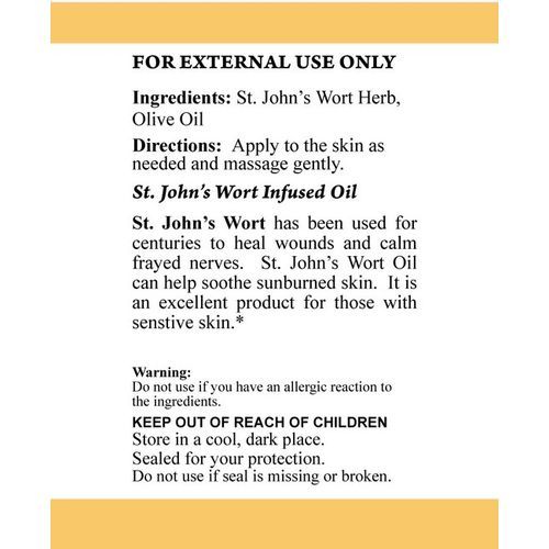 St john's wort has been used for centuries to heal wounds and calm frayed nerves. St john's wort oil can help soothe sunburned skin. Excellent product for those with sensitive skin. For external use. Soothe sunburned skin. Helps heal wounds. Therapeutic oil.