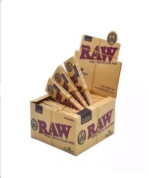 Each paper is individual watermarked with a Criss Cross which helps prevents runs and creates a more even burning rolling paper. Due to Hemp Gum being used if the gum does not stick as well as you like run the flame of your lighter along the length of the paper to give you a bit more stickiness. Once alight the taste is clean, pure and natural. One single box contains 50 packs rolling papers. Raw Kingsize Slim Rolling Papers are made from Pure Hemp which has been organically grown. The hemp paper is 100% chlorine free and unbleached.