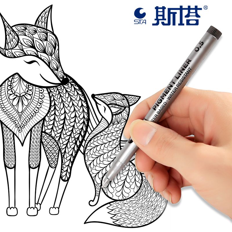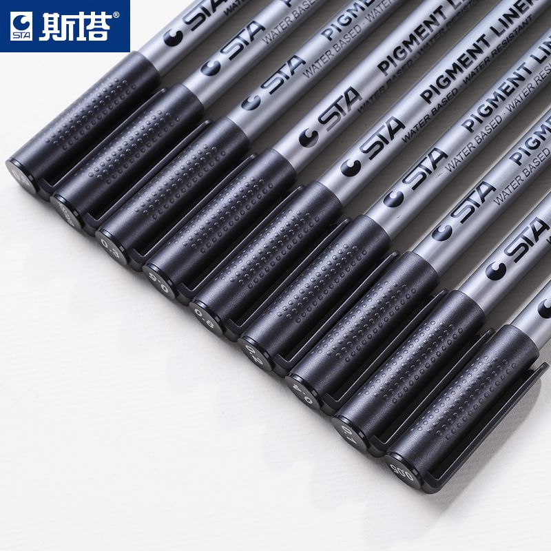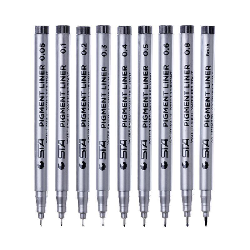 1*Sta 9pcs/lot Black Micron Pen Hook Liner Sketch Ma